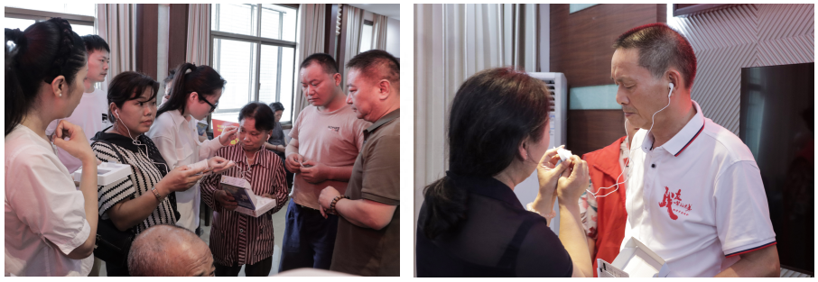 捐赠仪式结束后,企业及公益基金会相关人员到现场,并向听力残障人士介绍助听器的使用方法,得到现场残障人士的高度认可。